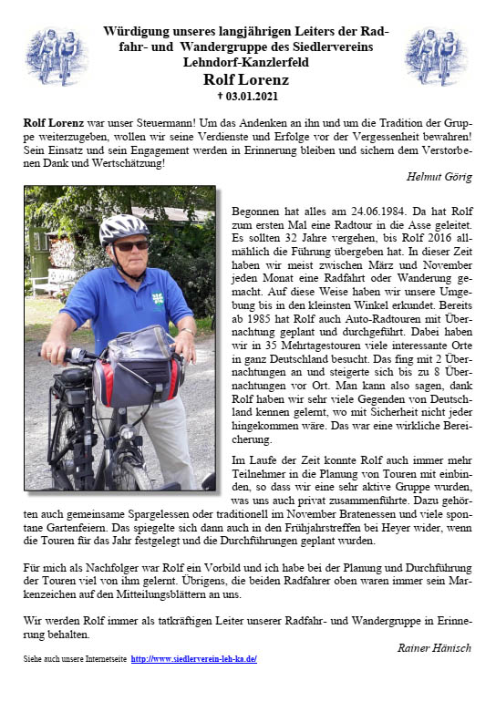Würdigung für Rolf Lorenz