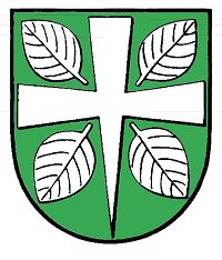In Grün ein von vier silbernen (weißen) Blättern bewinkeltes, silbernes (weißes) Fußspitzkreuz mit verbreiterten Armen.