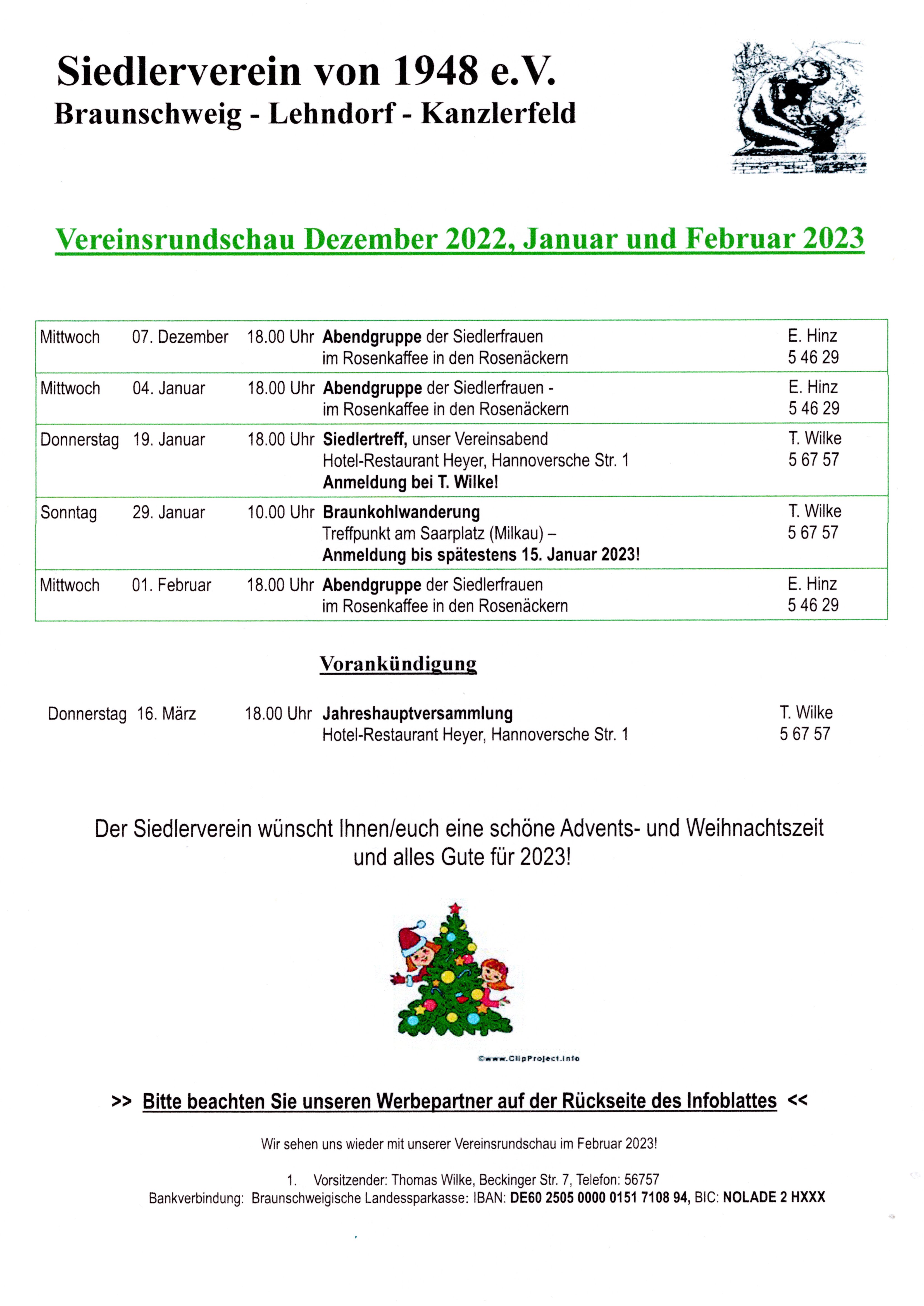 Vereinsrundschau Dezember 2022, Januar und Februar 2023