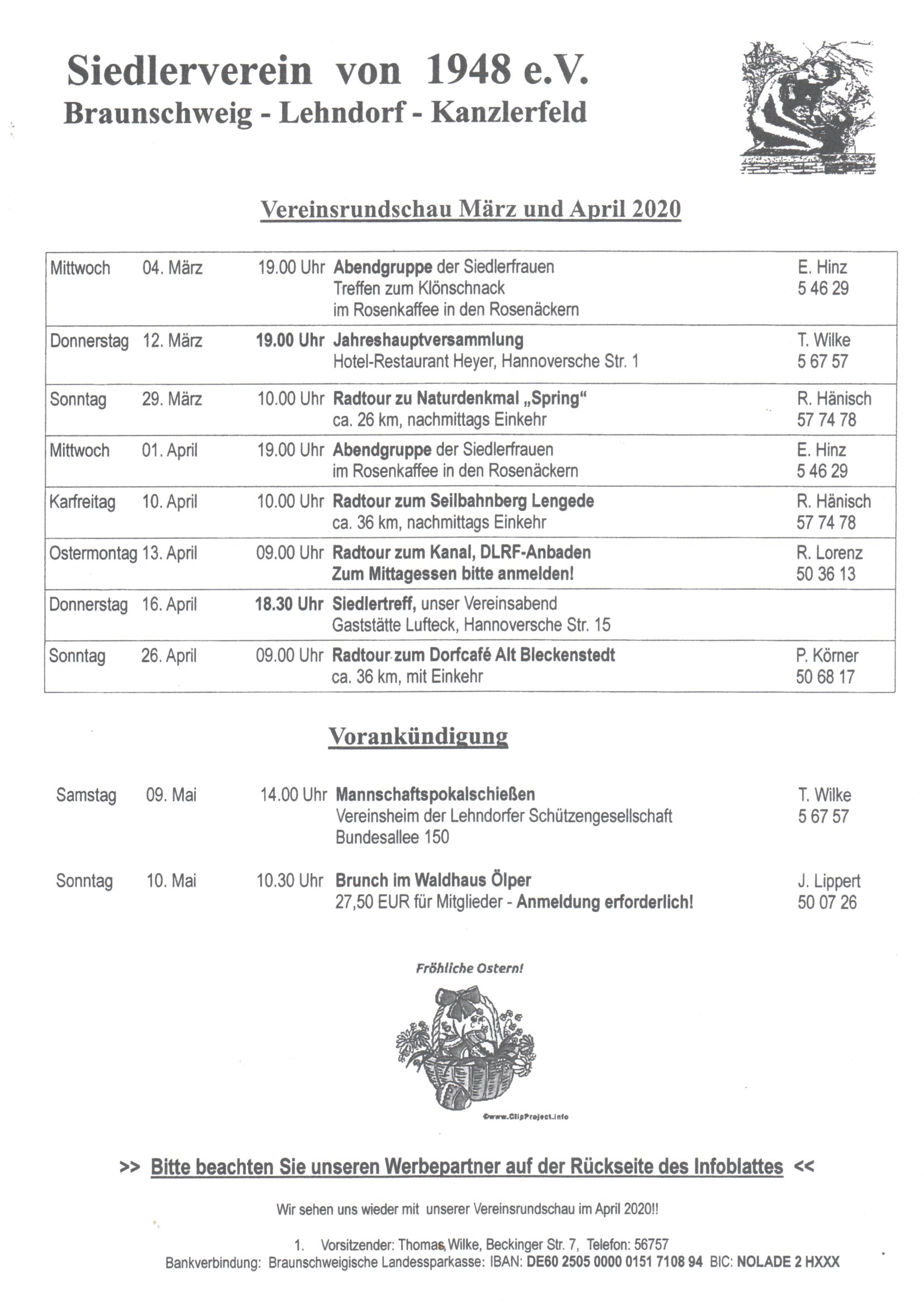 Vereinsrundschau März und April 2020